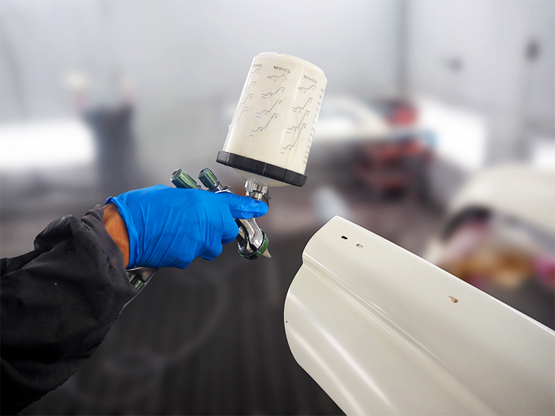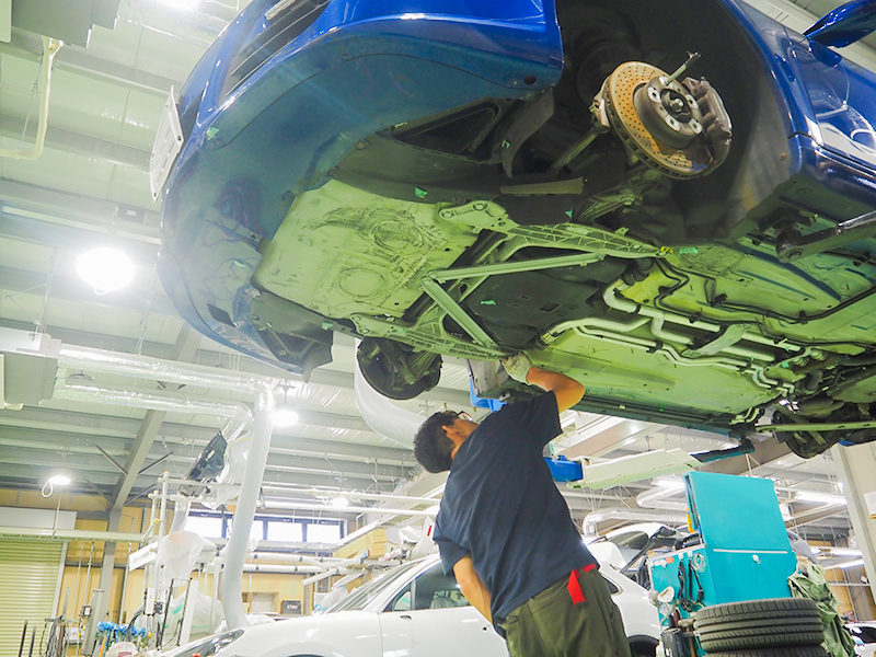 お預かりした車を、経験豊富な従業員が鈑金から塗装まで丁寧に対応いたします。仕上がりの美しさと安全性にこだわり、長く安心して乗っていただける修理を心がけています。