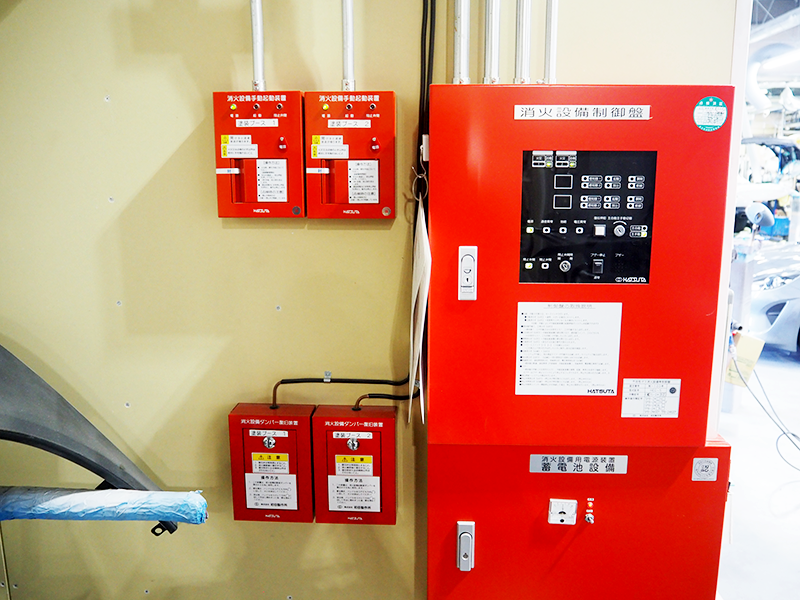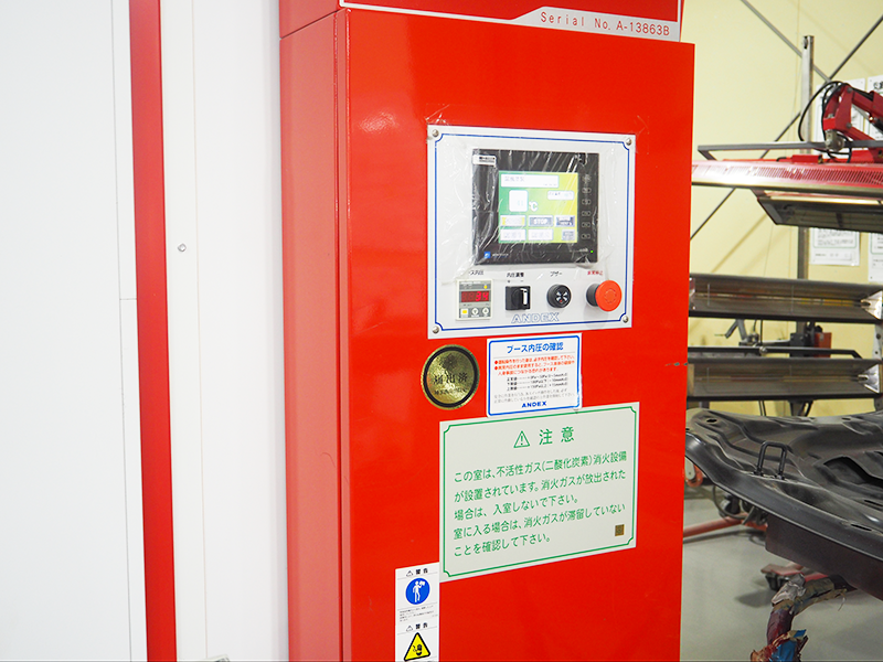 万一の火災時にも安心いただけるよう、工場と塗装ブースには消防設備を完備。大切な車をお預かりする立場として、作業の質だけでなく、保管環境の安全性にもこだわっています。お預かりから納車まで、責任を持ってお客様の愛車をお守りします。